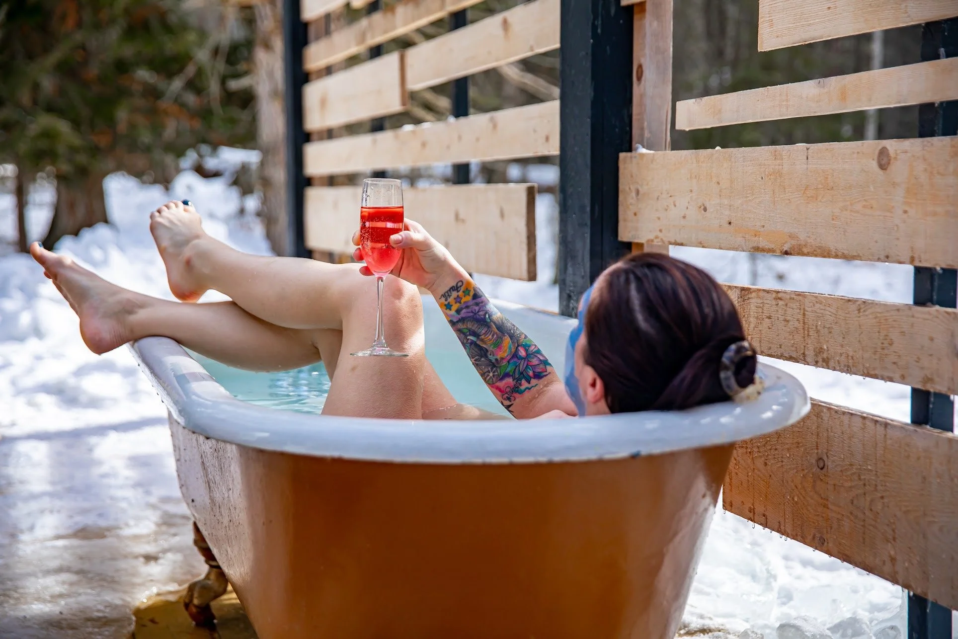 Cold plunges available, including the option for a natural creek plunge
