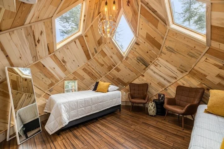 Choose from a range of cozy, thoughtfully designed lodgings — from creekside cabins to architecturally unique zomes.